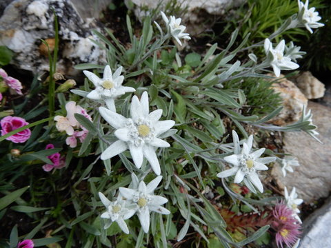 edelweiss latin leontopodium alpinum is a well known mountain flower belonging to the sunflower family blumen edelweiss